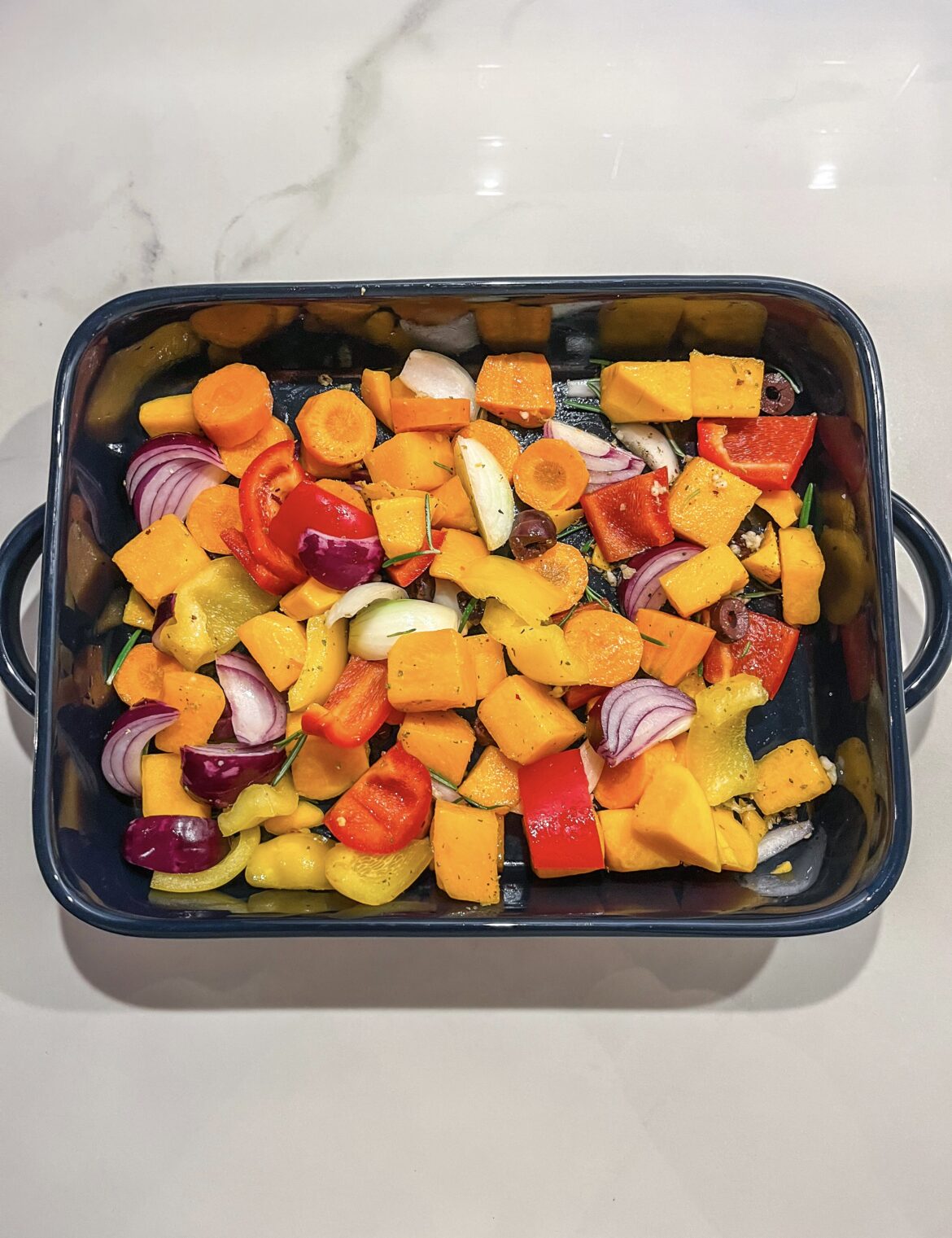 Wist je dat je bij stamppot makkelijk extra groenten kunt verwerken? Door niet alleen aardappelen te gebruiken, maar ook zoete aardappel, pastinaak of knolselderij, voeg je meer variatie en voedingsstoffen toe! In dit weekmenu zitten meer dan 20 verschillende groenten verwerkt. Als je hiernaast ook fruit en groente verwerkt in je ontbijt, tussendoortje en lunch, dan kom je makkelijk aan 30 verschillende soorten groenten en fruit deze week!