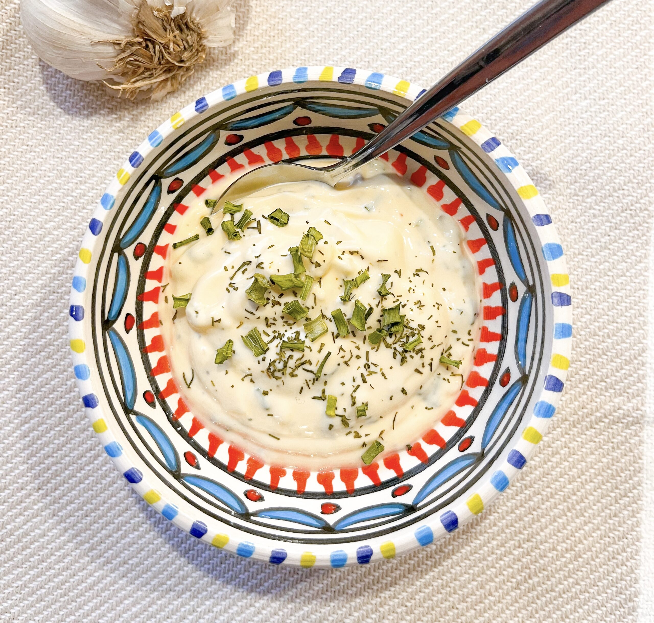 Jarenlang was de Turkse knoflooksaus van Yildiz mijn absolute favoriet, totdat ik deze zelfgemaakte knoflooksaus ontdekte. 🔥 Deze knoflooksaus is echt serieus nog zoveel lekkerder én gezonder dan kant-en-klare knoflooksaus. Bovendien is het supermakkelijk om te maken en klaar binnen 5 minuten!⏰
